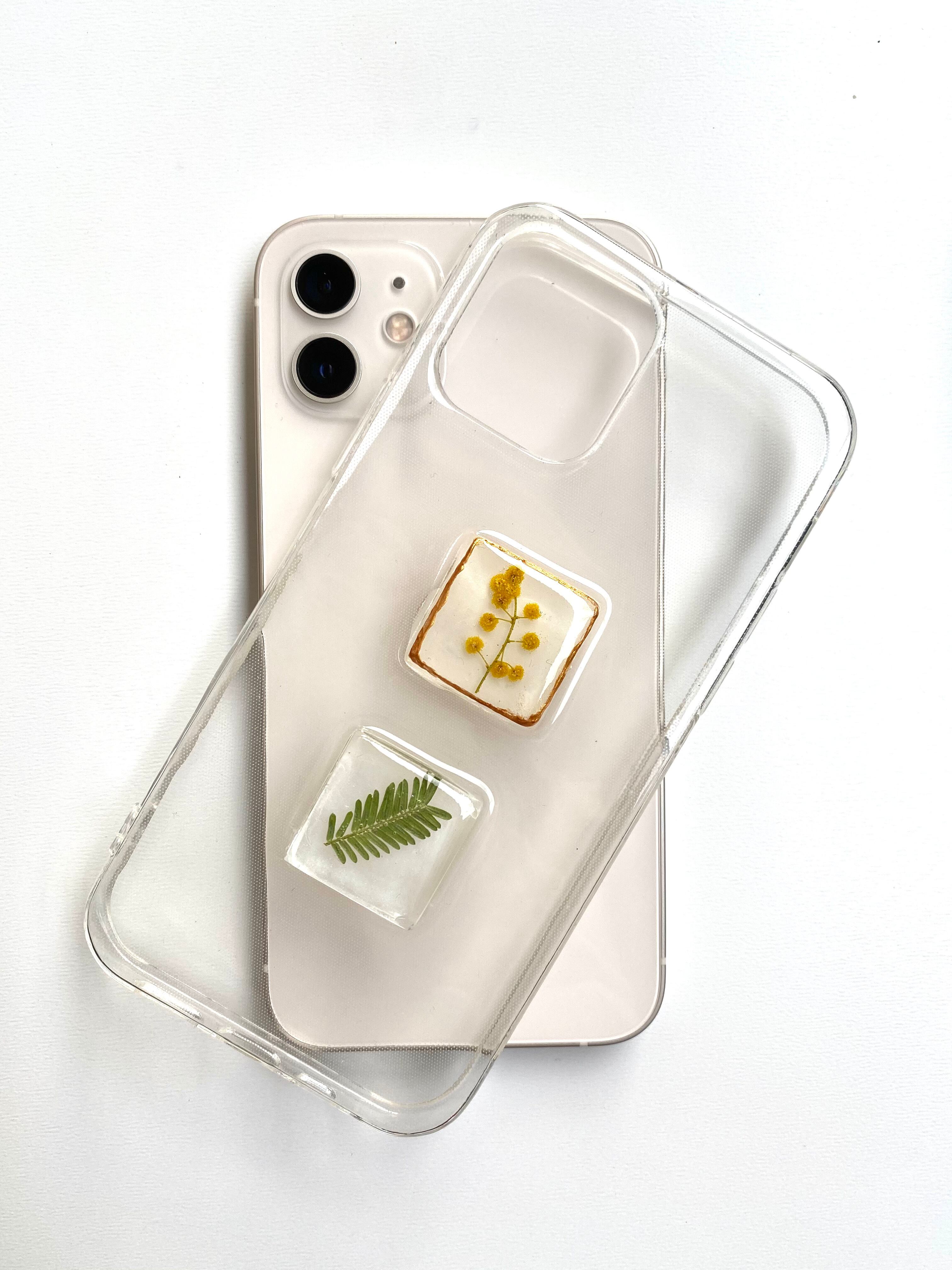 クリアハードケースを使用しております。本物のお花やフルーツなどを使用しているため、一つ一つの色や大きさが若干異なります。